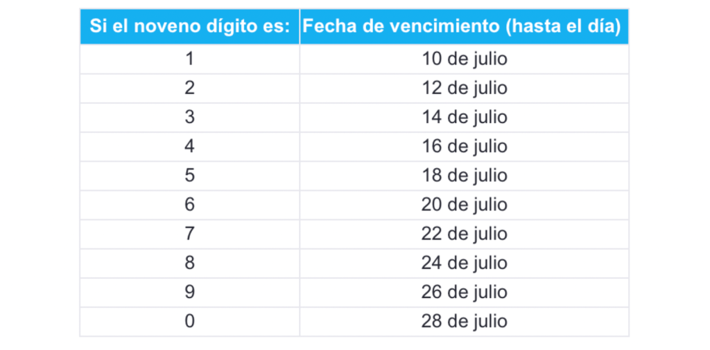 El ICT se debe presentar anualmente en el mes de julio del siguiente ejercicio fiscal, conforme al noveno dígito del Registro Único de Contribuyentes (RUC) del contribuyente auditado, de acuerdo con el siguiente calendario: