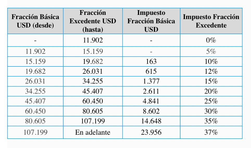 Tabla de Impuesto a la Renta Personas Naturales Ejercicio Fiscal 2024:
