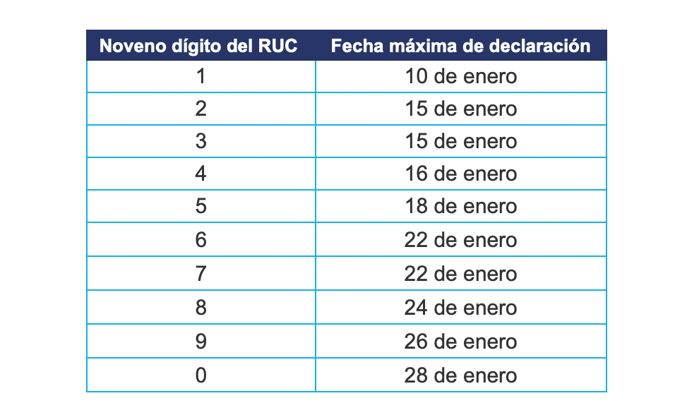 Nota: Si el día de la declaración vence en fin de semana o feriado, la declaración se podrá realizar el siguiente día hábil. Adicionalmente, es importante recordar que los contribuyentes especiales deberán presentar sus obligaciones tributarias hasta el viernes 11 de enero.